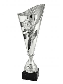 Puchar sportowy klasy ECONOMIC Puchar plastikowy umieszczony na podstawie z naturalnego marmuru. Wybrane wzory pucharów mogą zawierać dodatkowo miejsce na emblemat o średnicy 25mm lub 50mm. Nagrodę można zamówić wraz z tabliczką grawerowaną umieszczoną na postumencie marmurowym.