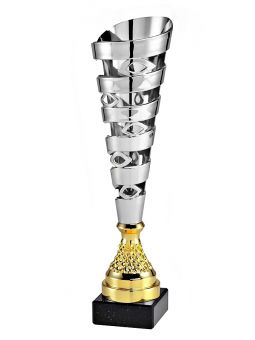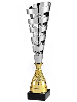 Puchar sportowy klasy ECONOMIC z wybranej serii sprawdzi się doskonale jako nagroda za zwycięstwo, trofeum okolicznościowe lub forma podziękowania za udział zawodach sportowych dzieci i młodzieży. Puchar posiada standardowy zdobiony kielich metalowy osadzony na plastikowej zdobionej złączce....