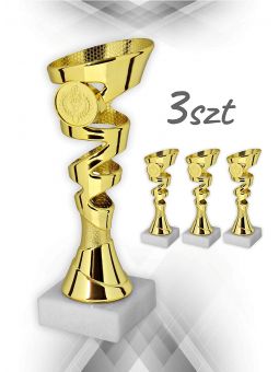 Puchar sportowy klasy MINICUPS Puchar plastikowy umieszczony na podstawie z naturalnego marmuru. Wybrane wzory pucharów mogą zawierać dodatkowo miejsce na emblemat o średnicy 25 mm. Nagrodę można zamówić wraz z tabliczką grawerowaną umieszczoną na postumencie marmurowym.