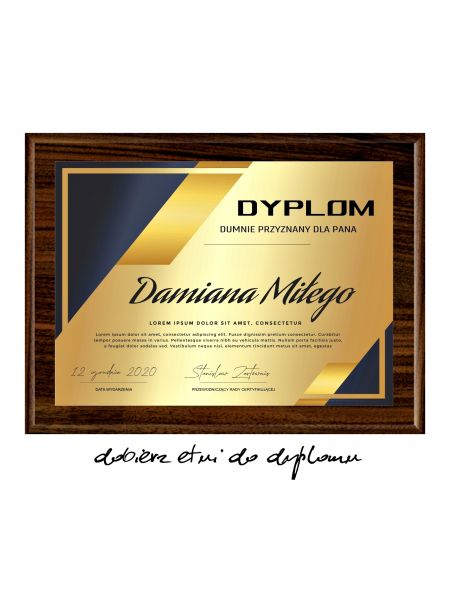HG255-G - Dyplom drewniany grawerowany. Aluminium kolor złoty. 304x228 mm (tab. 260x185 mm)