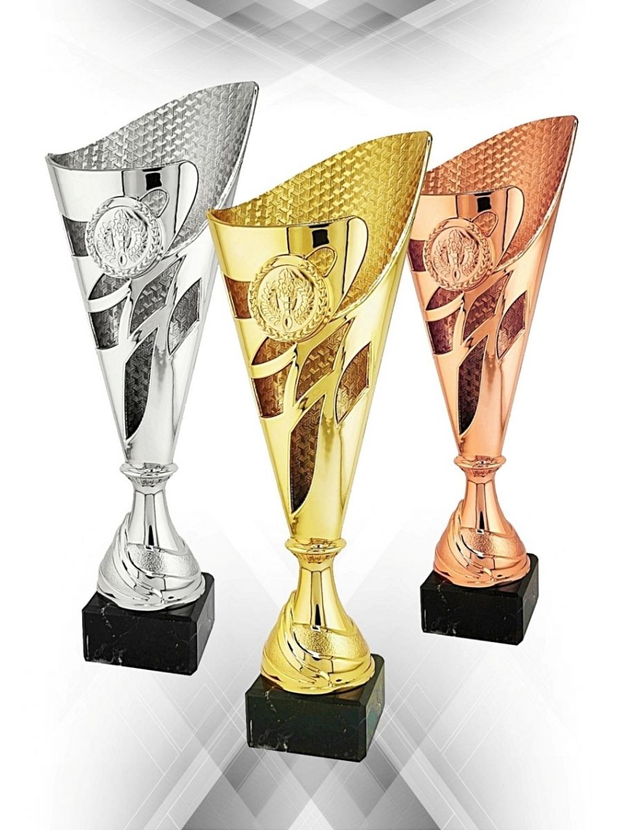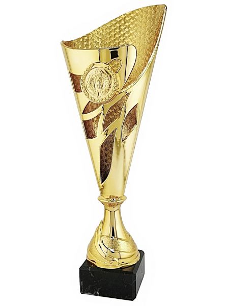 X148-G Puchar plastikowy VELO, insert 25mm - kolor złoty, rozmiar H-270 mm W-95 mm (tab. 50x25 mm)