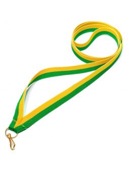 V8-Y/R-zestaw 10szt Wstążka do medali ŻÓŁTO-CZERWONA, szerokość 11mm, długość 82cm, złoty karabińczyk