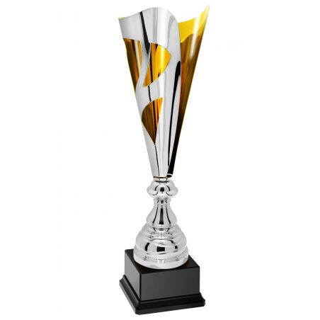 X640B Puchar metalowy TRIO, kolor srebrno-złoty, wysokość H-425mm, W-140 mm (tab. 68x35 mm /GBX08)