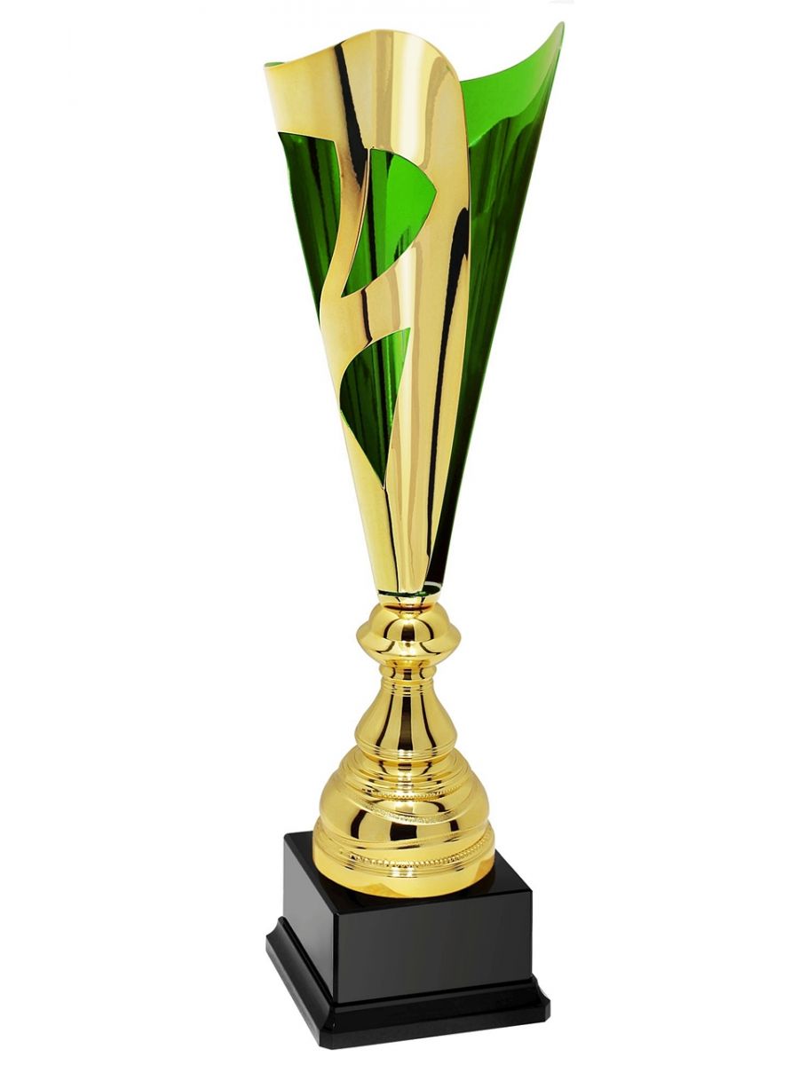 X641A Puchar metalowy TRIO GREEN, kolor złoto-zielony, wysokość H-440mm, W-140 mm (tab. 78x40 mm /GBX09)