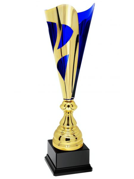 X643  Puchar metalowy TRIO BLUE, kolor złoto-niebieski, wysokość  H-440mm, W-140 mm (tab. 78x40 mm /GBX09)