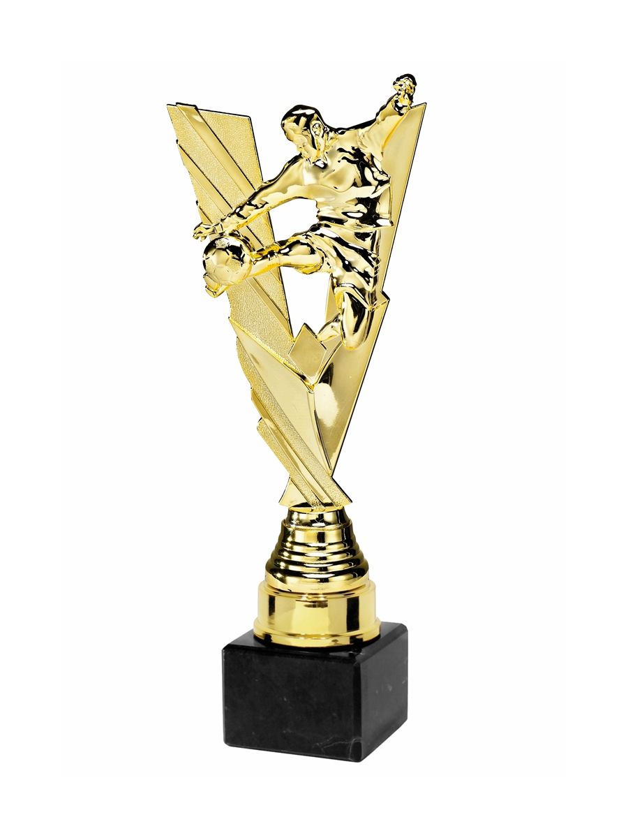 Q390C Statuetka plastikowa PIŁKA NOŻNA, kolor złoty, wysyokość H-190mm, W-95mm (tab.50x25 / MX420)