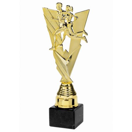 Q398A Statuetka plastikowa BIEGI, kolor złoty, wysyokość H-270mm, W-95mm (tab.50x35 / MX430) • Q398-seria • WIELKOŚĆ: rozmiar