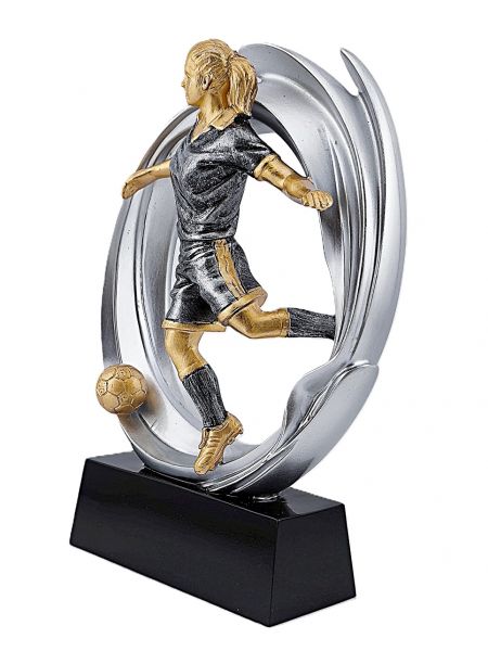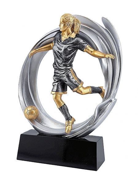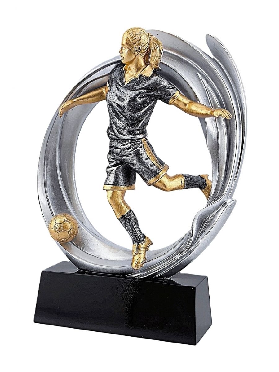 DRX004 Statuetka piłka nożna ZAWODNICZKA - seria WOW !, odlew 3D, wysokość H-170mm, W-120mm ( tab. 85/90x28mm ) - WOMAN'S SOCCER
