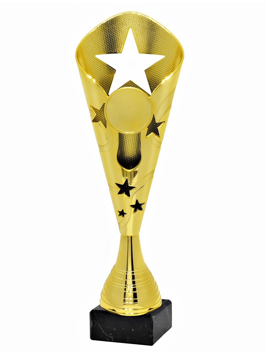 X176-G Puchar plastikowy STAR - kolor złoty, H-aa mm W-bb mm (tab. 70x25 mm / MX422)
