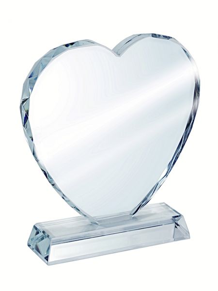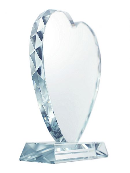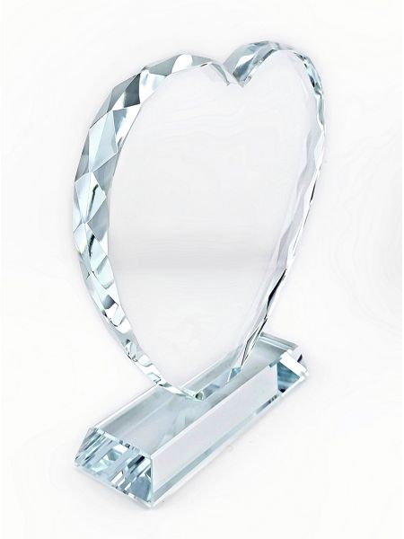XME1006 Trofeum szklane SERCE diamentowane, wysokość H-160mm, W-150mm x grubość 15mm, etui typu GIFTBOX, CLEAR HEART