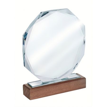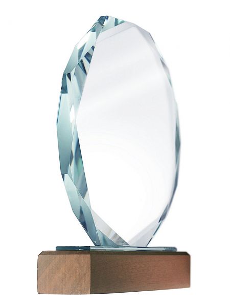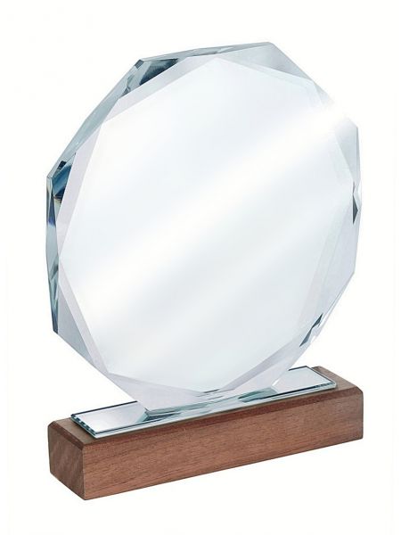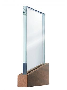 XME2012 Trofeum szklane CLEAR+WOOD 160x190mm, grubość szkła 15mm + etui typu GIFTBOX