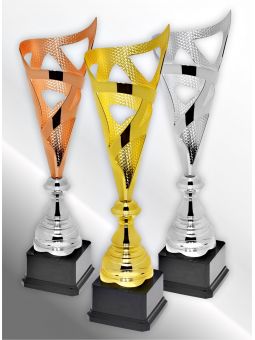 Prezentujemy Państwu komplet pucharów z serii X138-G ​​​​​​​Puchary plastikowe DANCE w kolorze złotym / srebrnym / brązowym, o wysokości (H) 285mm i szerokości (W) 95mm posiadają miejsce na wklejkę o średnicy 25mm i mogą być wyposażone w tabliczkę o wymiarach 60x25 mm (MX421), ​​​​​​​Wykonane są...