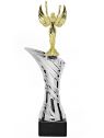Puchar sportowy klasy SUPER ECONOMIC wykonany z komponentów plastikowych umieszczony na podstawie z naturalnego marmuru lub syntetycznej podstawie GBX w zależności od modelu pucharu.