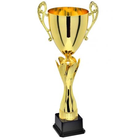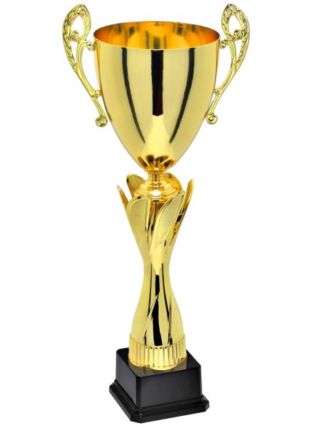 Puchar ten posiada metalowy kielich z uszami osadzony na metalowej złączce. Całość umieszczona jest na dociążonym postumencie serii GBX wykonanego z tworzywa ABS.