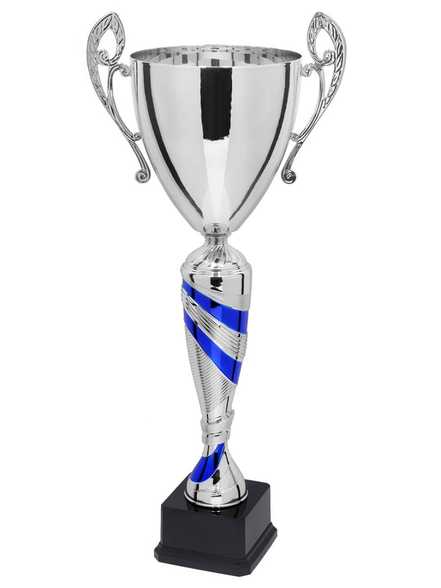 X813C Puchar kolor srebrno-niebieski, wysokość H-445 mm R-120 mm (tab. 64x30 mm / GBX07)