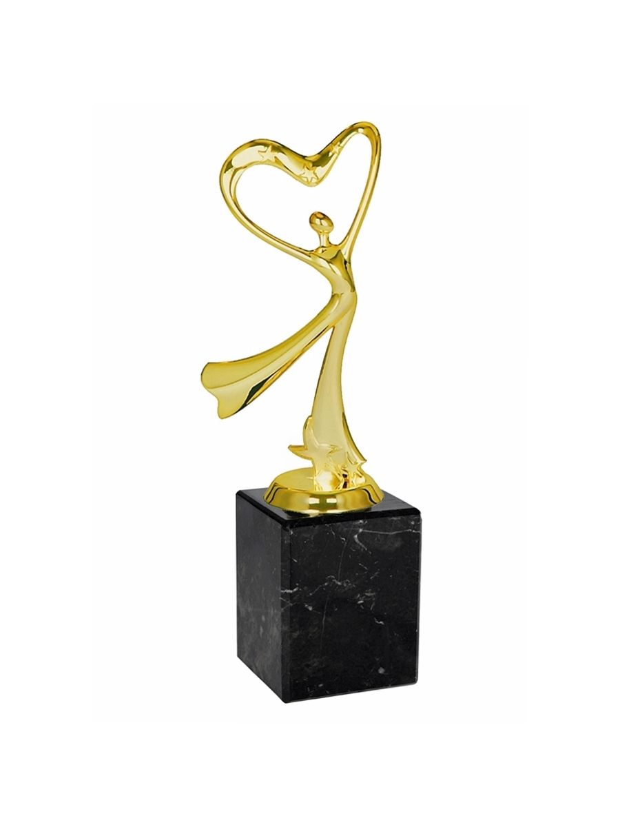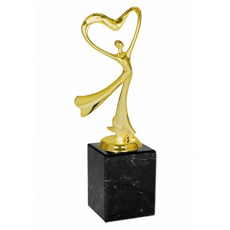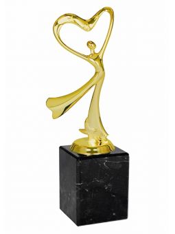 Q255-G Statuetka - taniec - SERCE na postumencie - kolor złoto-czarny, wys. H-200mm (tab. 50x35mm/ MX430)