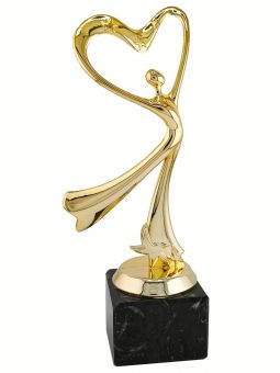 Q255-G Statuetka - taniec - SERCE na postumencie - kolor złoto-czarny, wys. H-200mm (tab. 50x35mm/ MX430)