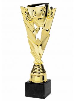 Q397A Statuetka plastikowa HAPPY, kolor złoty, wysyokość H-270mm, W-95mm (tab.50x35 / MX430) • Q397-seria • WIELKOŚĆ: rozmiar