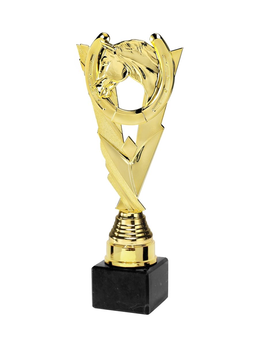Q393A Statuetka plastikowa JEŹDZIECTWO - PODKOWA, kolor złoty, wysyokość H-270mm, W-95mm (tab.50x35 / MX430) • Q393-seria • WI