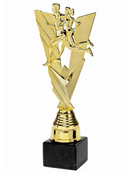 Q398A Statuetka plastikowa BIEGI, kolor złoty, wysyokość H-270mm, W-95mm (tab.50x35 / MX430) • Q398-seria • WIELKOŚĆ: rozmiar