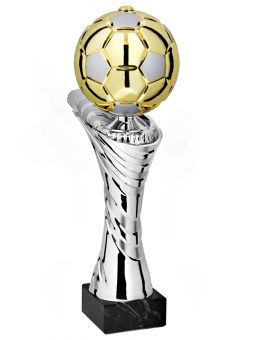 Puchar sportowy klasy SUPER ECONOMIC wykonany z komponentów plastikowych umieszczony na naturalnej podstawie marmurowej.