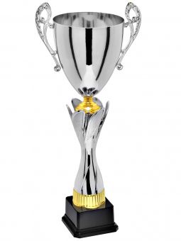 Puchar sportowy klasy SUPER ECONOMIC wykonany z komponentów plastikowych umieszczony na podstawie z naturalnego marmuru lub syntetycznej podstawie GBX w zależności od modelu pucharu.