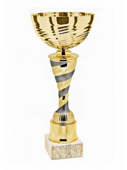 Puchar sportowy klasy SUPER ECONOMIC wykonany z komponentów plastikowych umieszczony na podstawie z naturalnego marmuru lub syntetycznej podstawie GBX w zależności od modelu pucharu.