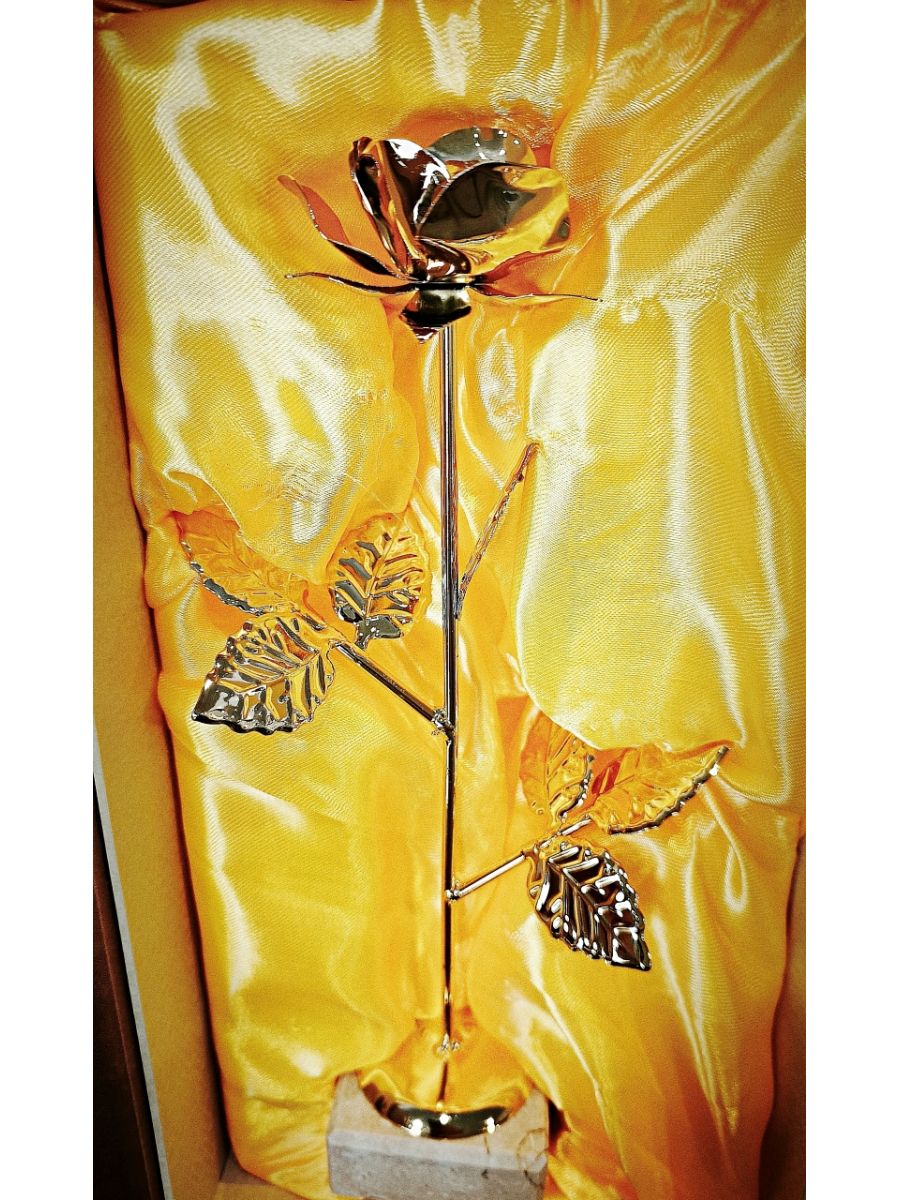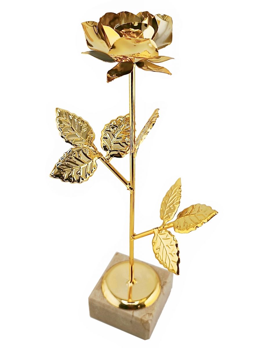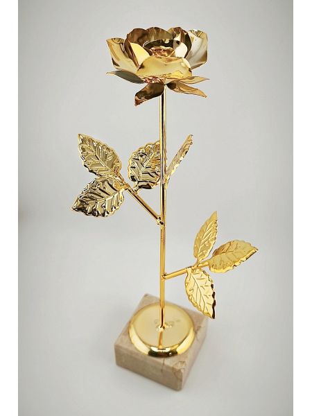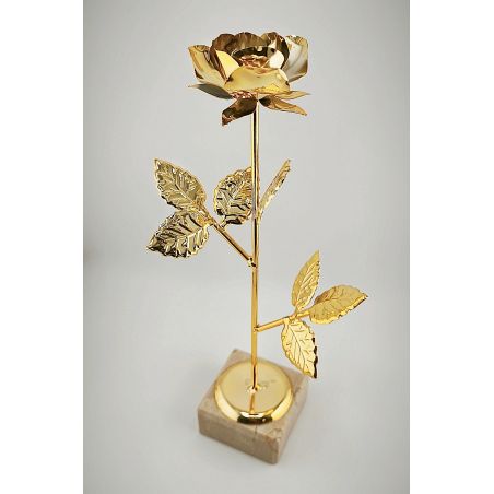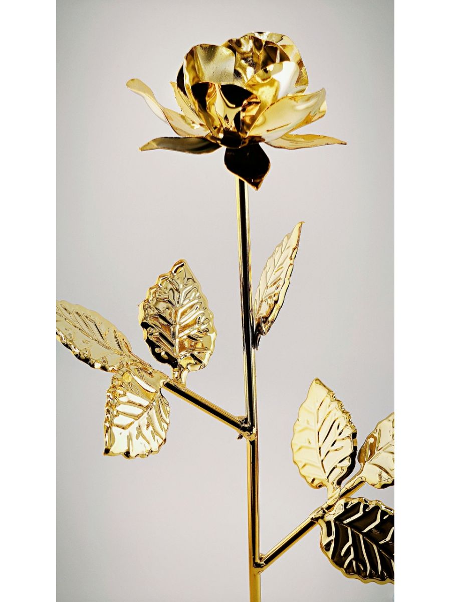 Nasza metalowa róża dostępna jest w kolorze złotym i ma imponującą wysokość 290mm. Może ona stanowić doskonałą ozdobę, zarówno w domu, jak i w biurze. Jest to również świetny pomysł na oryginalny upominek dla bliskiej osoby.