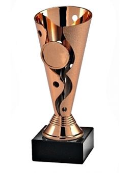 Puchar sportowy klasy SUPER ECONOMIC wykonany z komponentów plastikowych umieszczony na podstawie z naturalnego marmuru lub syntetycznej podstawie GBX w zależności od modelu pucharu.